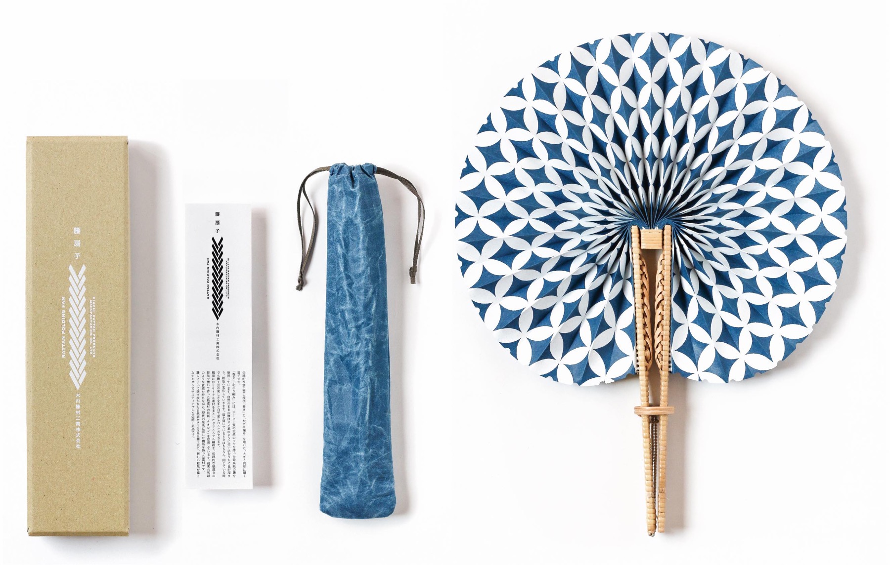 The rattan sensu is a folding fan which is manufactured with traditional rattan craft techniques called maki (coiling) and kazari ami (ornamental weaving) and which forms a full circular shape when it is open.